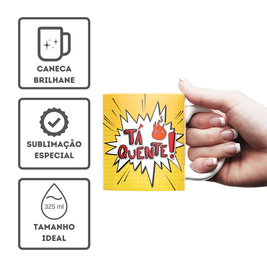 Caneca Porcelana Brilho - Sua Comédia - Ta quente - Única - 325 ml