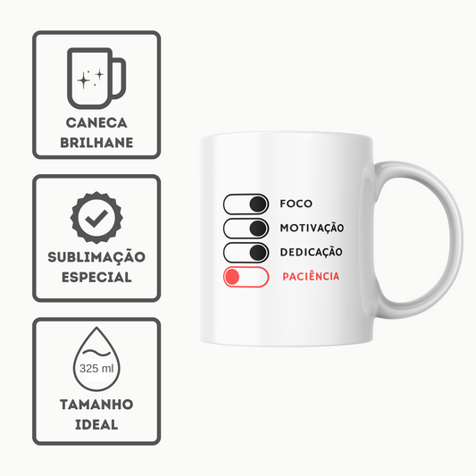 Caneca Porcelana Brilho - Sua Comédia - On Off Paciência - Única - 325 ml