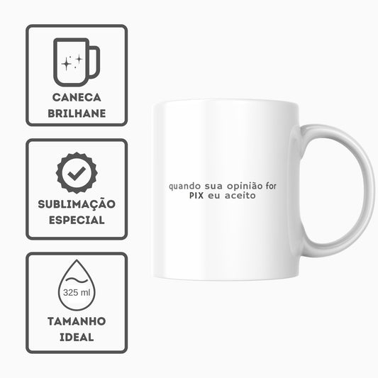 Caneca Porcelana Brilho - Sua Comédia - Quando sua opinião for PIX eu aceito - Única - 325 ml