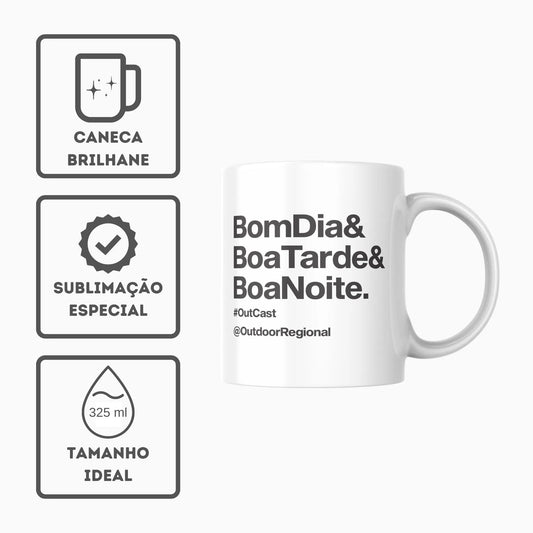 Caneca Porcelana Brilho - Outcast - Boa Tarde - Boa Noite Outcast - Única - 325 ml